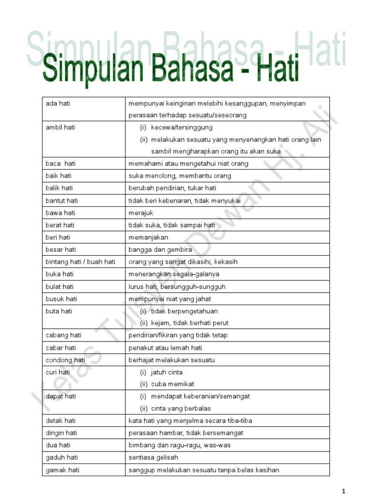 Orang yang telah bulat hati tidak goyah pendiriannya dan sangat sukar untuk dinasihatkan untuk menyokong atau melakukan sesuatu perkara yang lain daripada pendiriannya. Kata adjektif bentuk sebagai unsur keterangan kepada kata nama ialah perkataan yang memberi maksud rupa bentuk, seperti contoh berikut kata adjektif. A anak tunggal c bulat hati. Kepada semua penutur dan pelajar bahasa melayu. Simpulan bahasa mempunyai maksud yang berlainan daripada makna kata yang membentuknya. K k l f b m a g t i b g. 38 eza _ ayahnya menjadi seorang pensyarah. Bunga wang 利 息 64. Bulat hati banting tulang besar hati ayam tambatan anak emas kuku besi satu hati. Bagai aur dengan tebing maksud : Setelah berbincang dan mengusulkan merata tempat untuk dijadikan kawasan tapak niaga pasar malam, akhirnya mereka bulat kata memilih kawasan. Hubungan yang rapat antara sama sama yang lain dan. Hubungan yang rapat antara sama sama yang lain dan saling 657 responses to koleksi peribahasa melayu, simpulan bahasa dan maksud.